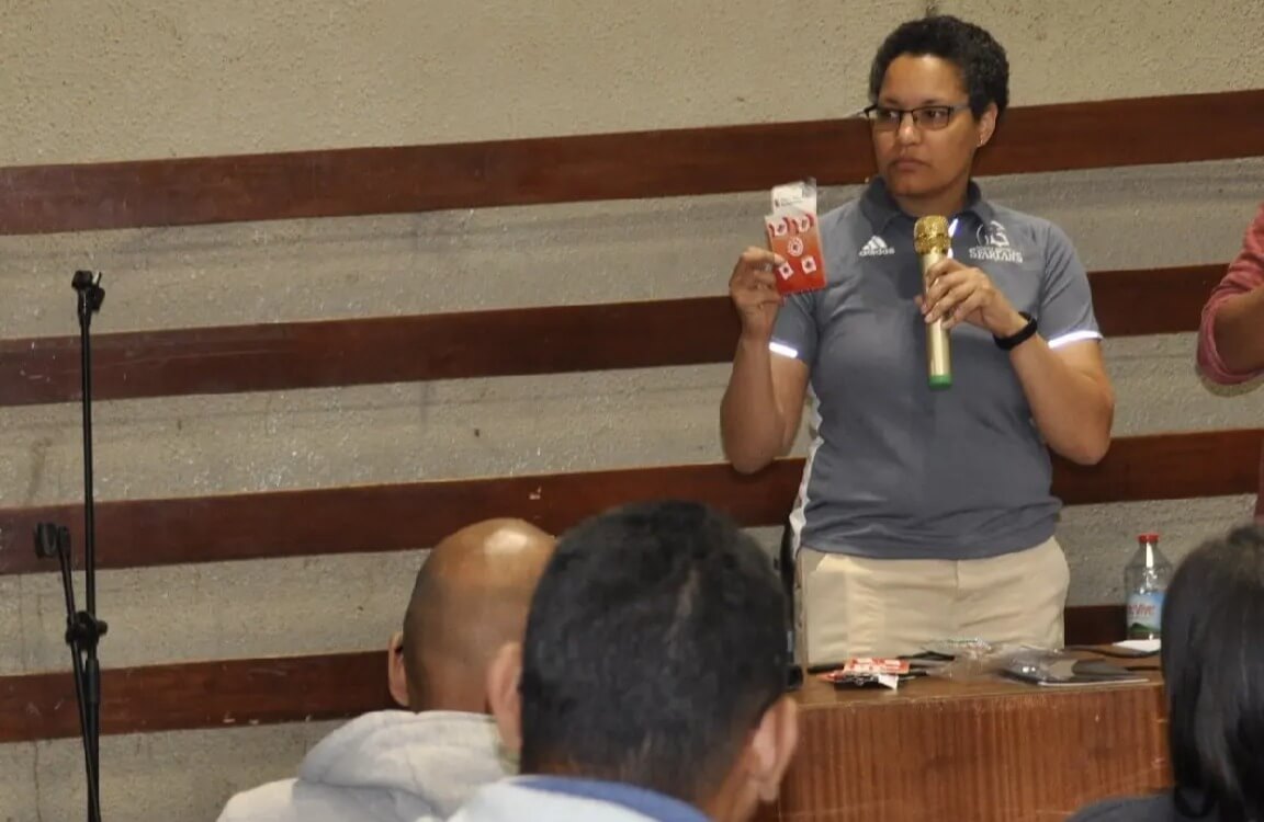 Lors de la première journée, Cheryl Jean-Paul, coach de l’équipe féminine des Spartans de la Trinity Western University au Canada, a partagé son savoir-faire au Palais des Sports.