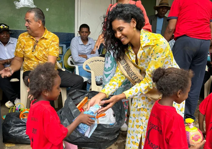Antsaly Ny Aina Rajoelina, couronnée Miss Madagascar en 2022, se démarque par son implication active dans les œuvres caritatives. Récemment, elle a gâté environ 350 enfants à Analavory, région d’Itasy, témoignant de son engagement continu envers les causes sociales.