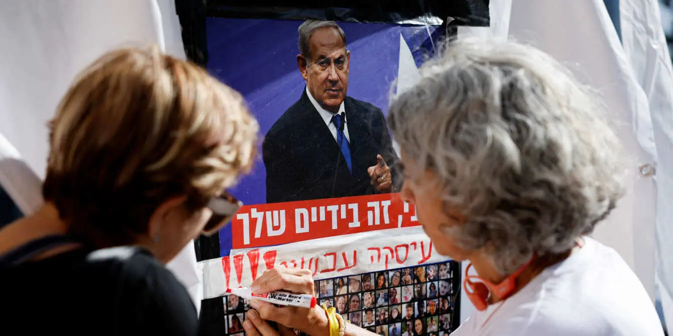La population israélienne est constamment rappelée à la réalité de la situation par les images des otages diffusées massivement dans les lieux publics et les médias. Dans le même temps, une affiche à Tel-Aviv montre le Premier ministre avec l’inscription « c’est entre vos mains », soulignant le rôle crucial de Nétanyahou dans la résolution de cette crise.