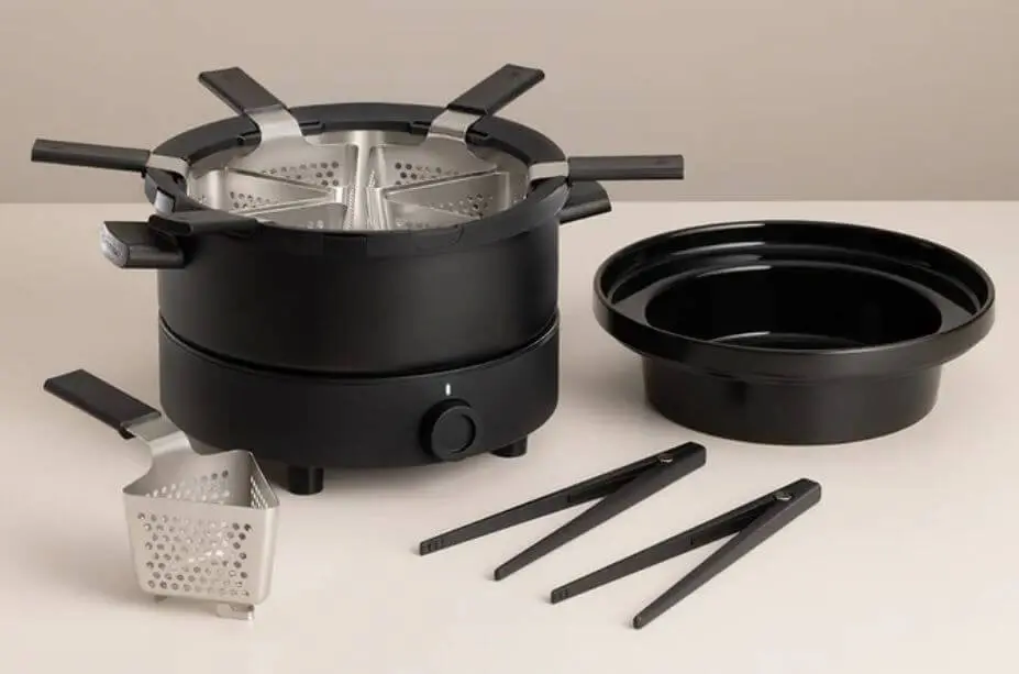 Le produit phare de Fondussimo est son appareil de fondue innovant, conçu pour transformer la préparation et la dégustation de la fondue bourguignonne. Contrairement aux appareils traditionnels, le Fondussimo permet de cuire une variété d’aliments en même temps grâce à son système de paniers individuels. Ce système ingénieux permet non seulement de cuire les aliments de manière plus uniforme, mais aussi de faciliter leur récupération sans risque de brûlure, offrant ainsi une expérience culinaire plus sécurisée et agréable.
