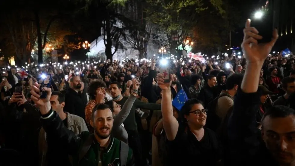 Malgré le premier vote en faveur du projet de loi, la détermination des Géorgiens à exprimer leur désaccord ne faiblissait pas. Le soir même, après la décision du Parlement, des milliers de citoyens se sont rassemblés dans le centre de Tbilissi, devant l’enceinte parlementaire. Leur cri de ralliement, « Non à la loi russe ! », résonnait à nouveau dans les rues animées de la capitale géorgienne. La congestion routière causée par les manifestants bloquant les artères principales de la ville témoignait de l’ampleur du mécontentement populaire.
