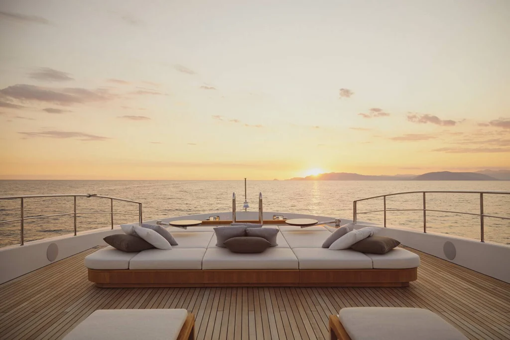 Le yacht Italia Diamond Sofa, estimé à 4,4 millions de dollars, cumule ainsi plusieurs de ces éléments : une structure travaillée à partir de bois nobles, un habillage en cuir italien haut de gamme et, surtout, un usage spectaculaire de fils d’or et de diamants incrustés dans la structure. Nous ne sommes plus ici dans le registre du confort mais dans celui de la haute joaillerie appliquée au mobilier.