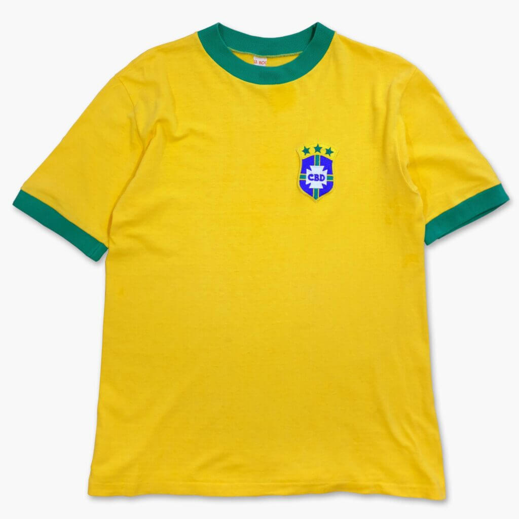 Dans les années 1960 et 1970, la plupart des maillots sont simples. Les clubs et sélections n’ont pas encore basculé dans l’ère commerciale moderne. On choisit une couleur, un col, parfois un liseré. Les maillots de cette époque séduisent encore parce qu’ils ne sont pas envahis par des éléments qui les datent. Ils ressemblent à des objets d’art sportif. Le Brésil 1970 et l’Ajax des seventies en sont les meilleurs exemples.