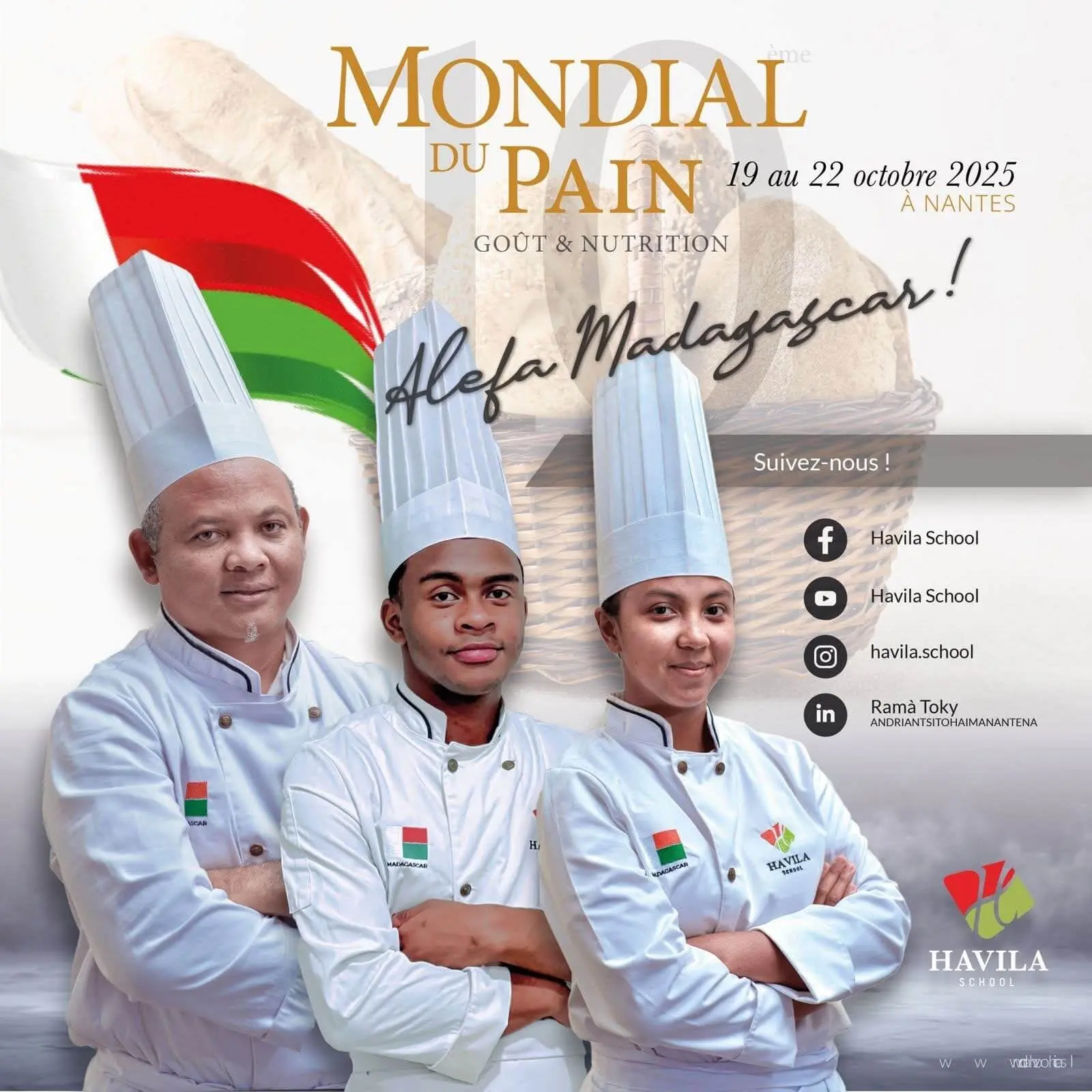 La sélection de l’équipe malgache n’a pas été le fruit du hasard. Toavina Rainibenalahatra s’est distingué au sein de la Havila School par sa maîtrise technique et sa passion communicative pour la boulangerie artisanale. Son assistant, Orlando Botsy Totoashley, partage cette même rigueur et cette envie d’excellence. Ensemble, ils forment un binôme soudé, porté par la détermination de représenter dignement leur pays.